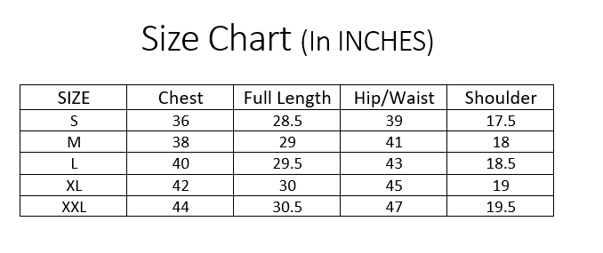 | Size | 36-S, 38-M, 40-L, 42-XL, 44-XXL |